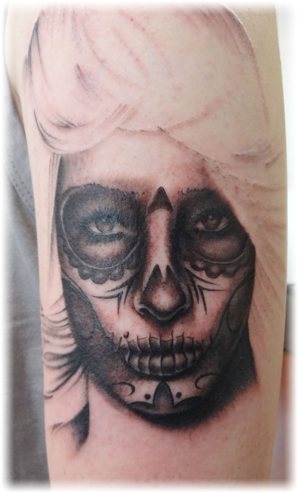 WIP: David's Gypsy Sugar Skull Girl. Tattoo by JustinPictures of Sugar Skull Tattoos For Girls 2015 :